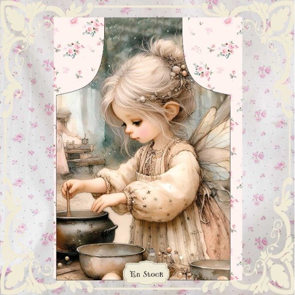 Imaginá la hora de la cena en el bosque: lucecitas de luciérnagas flotan como farolitos y el caldero burbujea con sopa de arcoíris. **Cocinerita de Estrellas** revuelve con su cucharita de madera, las alitas brillan de harina y en su rodete lleva perlitas de rocío. Cada vez que la abraces en este delantal, olerás pan calentito y sentirás que tu cocina se llena de magia. 🧚♀️🍲✨