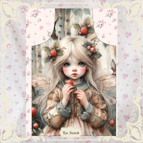 Imaginá que abrís la cocinita de juguete y ahí está **Fresita**, con sus alitas de gasa y su vestidito remendado de retazos de sol. Tiene el pelo lleno de frutillitas silvestres que recolectó al amanecer, y sostiene una en sus manitos como quien guarda un tesoro. Cada vez que la mires, olerás mermelada recién hecha y escucharás el cantito de los pajaritos que la ayudan a cocinar galletitas de miel. 🧚♀️🍓✨