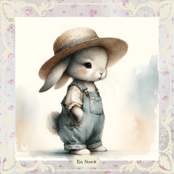 *Imagina un soleado jardín de primavera: un conejito con sombrero de paja camina entre flores, mientras la brisa mueve su overol celeste. Esa ternura, esa calma, se cose en cada puntada de esta batista. Perfecta para un babero, un pañuelito o un detalle que robe sonrisas. 🐇💛✨*