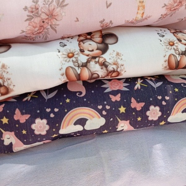Una mantita suave que envuelve a un bebé recién nacido, con Minnie soplando una flor de diente de león, un koala abrazando su ramita y un gatito rosado durmiendo entre nubes. El sol entra por la ventana, la mamá sonríe, y vos… **vos hiciste ese momento realidad**. 🌿✨