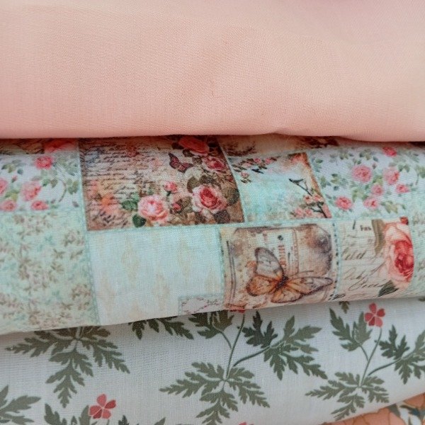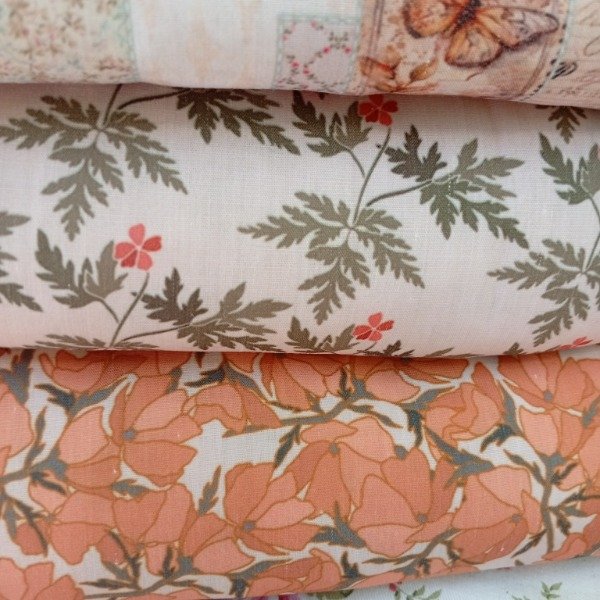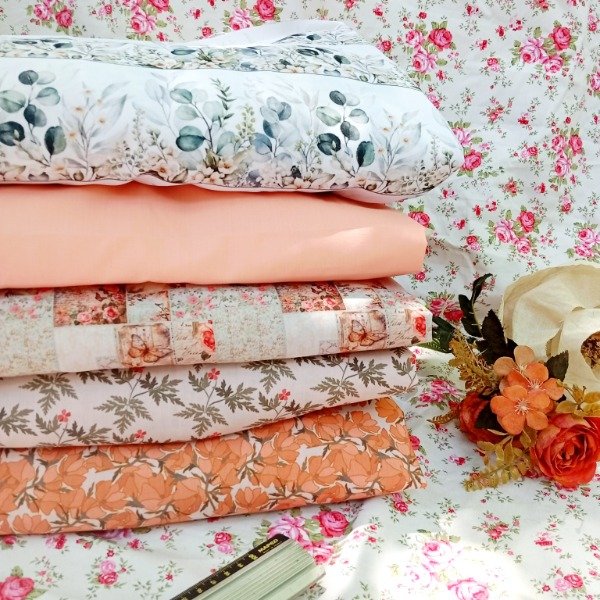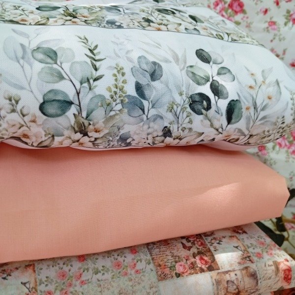 Perfecto para: almohadones de habitación, neceseres de viaje, mantitas livianas de verano, bolsos de tela con estilo, proyectos de patchwork contemporáneo. El salmón liso le da estructura al pack y funciona como respiro visual entre los estampados.