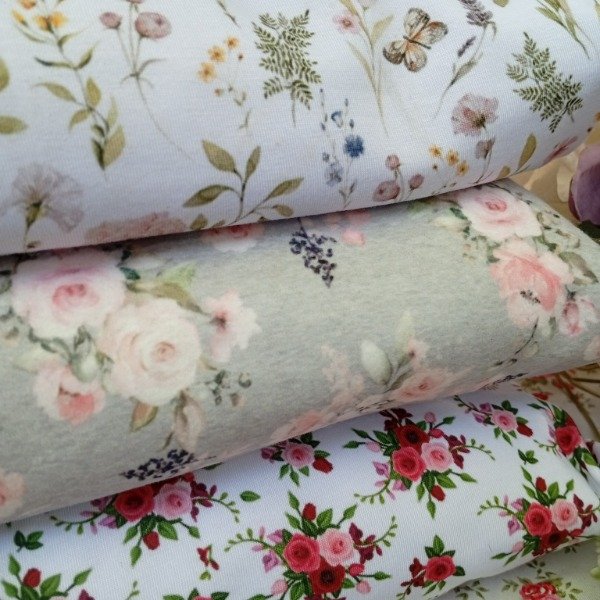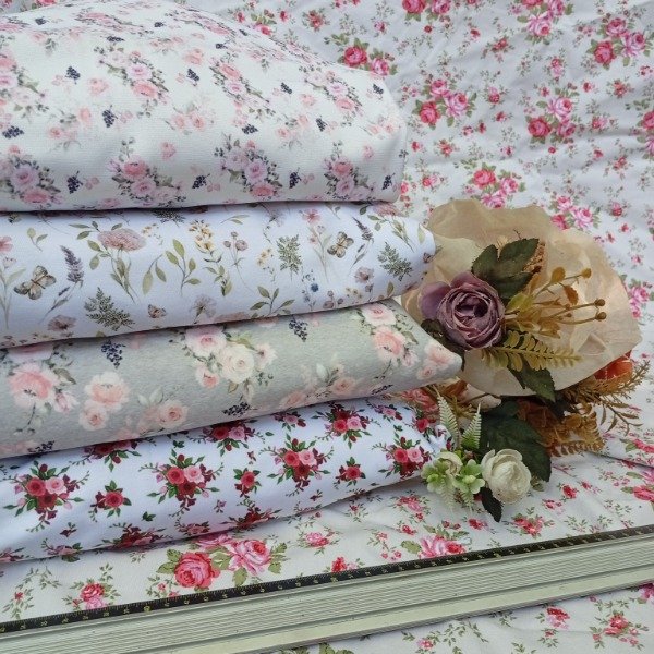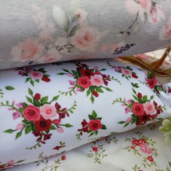 Podés hacer un conjuntito exquisito: el bolsillito estampado en la remerita o el body, la terminación en el gorrito y en el pantaloncito. Con estas cuatro telas armás un conjunto completo que parece de diseñador pero lo hiciste vos, con tus manos y tu intención. Y eso no tiene precio.