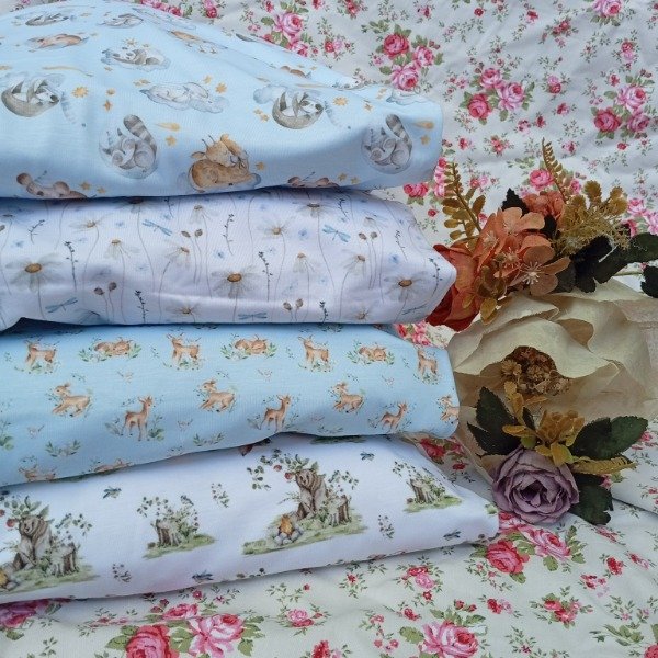 - Manta de arrullo doble faz combinando 2 diseños del pack con vivos en tela lisa