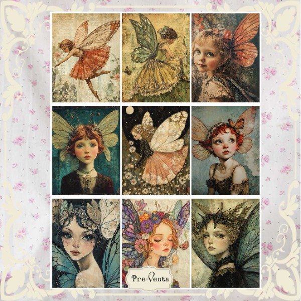 rostros delicados, miradas suaves y coronas de flores que parecen pintadas con un aire antiguo y un toque mágico.