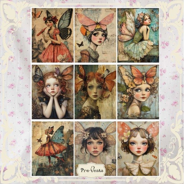 rostros delicados, miradas suaves y coronas de flores que parecen pintadas con un aire antiguo y un toque mágico.