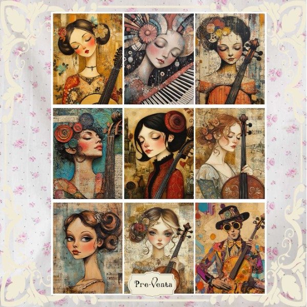 Panel de musas florales (30 x 23 cm cada ilustración).