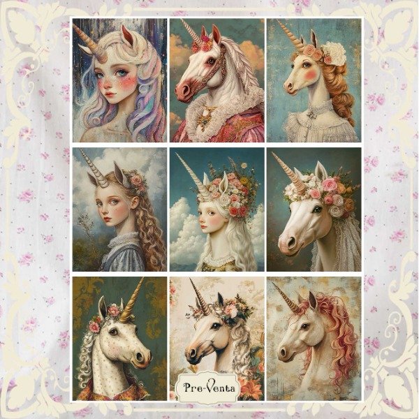 rostros delicados, miradas suaves y coronas de flores que parecen pintadas con un aire antiguo y un toque mágico.