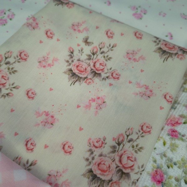 telas rosas, toalla mágica, batista cuadrillé, batista rosas, gabardina floral, cortes de tela, set de telas, costura bebé, shabby chic, romantic sewing, amo telas