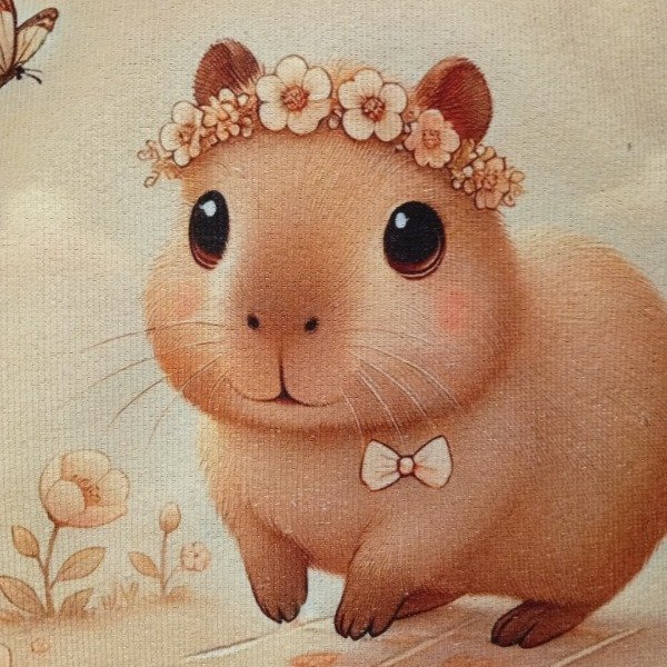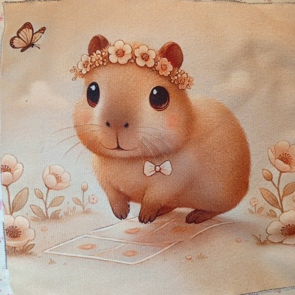 🌼 “Capybarita Hopscotch” – Disponible en Toalla / Gabardina Acrílica / Batista