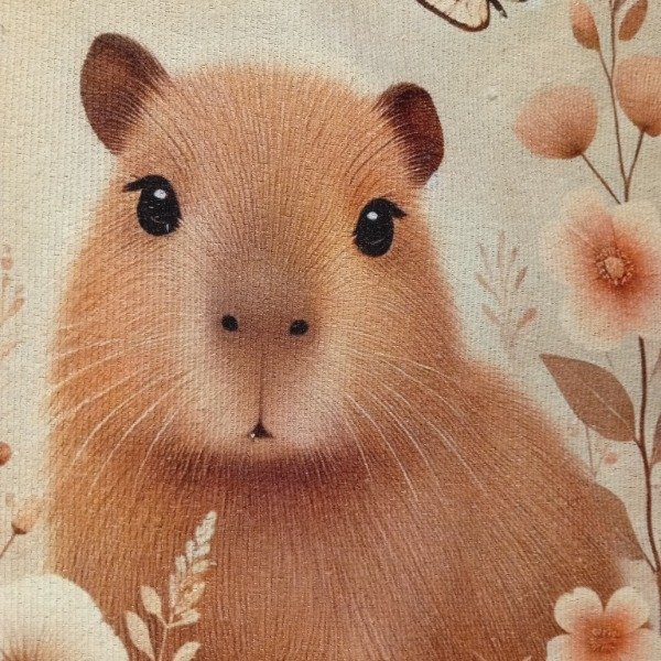 🌼 “Capybarita Sweet” – Frente 35×35 cm (Toalla / Gabardina Acrílica / Batista)