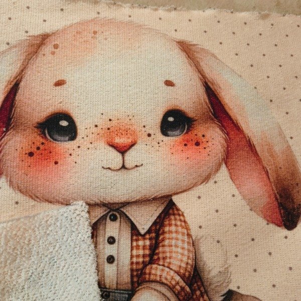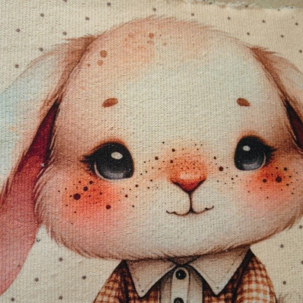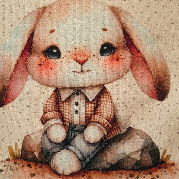 Este conejito dulce, con su camisa llena de flores y sus mejillas sonrojadas, parece salido de un cuento moderno lleno de encanto y personalidad. La mezcla entre lo silvestre y lo contemporáneo lo vuelve ideal para proyectos infantiles que buscan ternura pero también un toque fresco y actual. Sus ojitos brillantes y su postura tranquila transmiten calma y compañía.