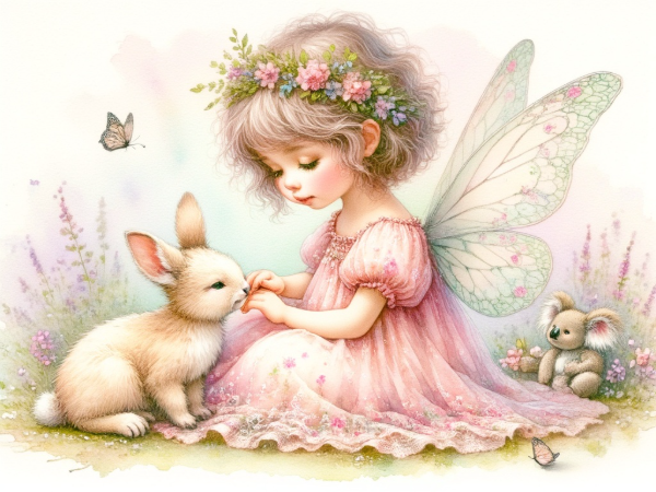 En un claro suave del bosque, una conejita esponjosa y un erizo adorable comparten una taza de té rosadito sobre una manta a cuadros. Entre frutillas, honguitos mágicos y vajilla dulce, esta escena transmite amistad, ternura y un momento de calma perfecto.
