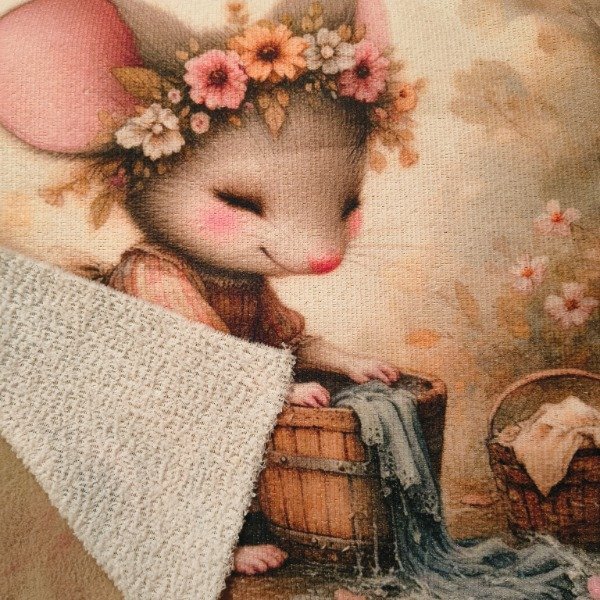 ratoncita vintage, mouse panel, frente infantil, panel batista, amo telas, ilustración tierna, mantita bebé, almohadón infantil, frente 35x35, frente 100x70, frente 145x100, frente 200x145, frente 150x73, paneles.