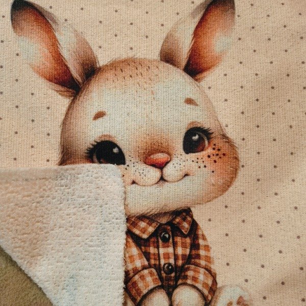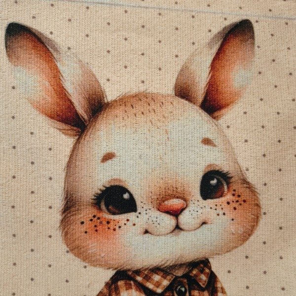 Este conejito dulce, con su camisa llena de flores y sus mejillas sonrojadas, parece salido de un cuento moderno lleno de encanto y personalidad. La mezcla entre lo silvestre y lo contemporáneo lo vuelve ideal para proyectos infantiles que buscan ternura pero también un toque fresco y actual. Sus ojitos brillantes y su postura tranquila transmiten calma y compañía.