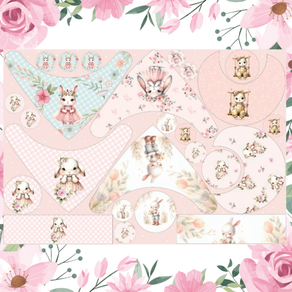 (Conejitas, erizo floral, patitos y tonos pastel para combinar en sets.)
