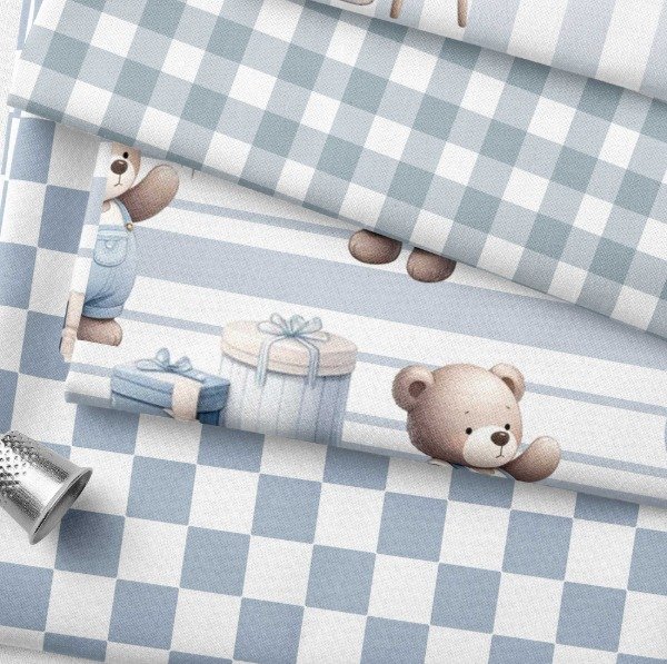 🐻 4 diseños que se complementan perfecto 📏 10 metros pensados con el corazón 🎨 Tonos celestes del cielo, beige suave, blanco puro 💙 Listo para convertirse en sábanas, almohadones, mantitas, cortinas, vestiditos, lo que tu amor necesite