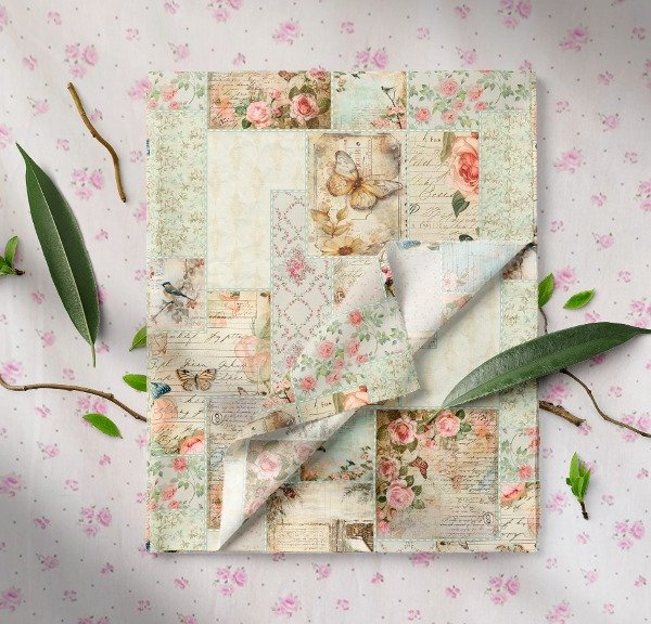 🌸 Una tela súper suavecita y romántica con un diseño vintage de mariposas, rosas, escrituras antiguas y detalles florales. Su textura es más suave que la batista, ya que tiene mayor contenido de poliéster, lo que la hace ideal para confecciones cómodas y delicadas.