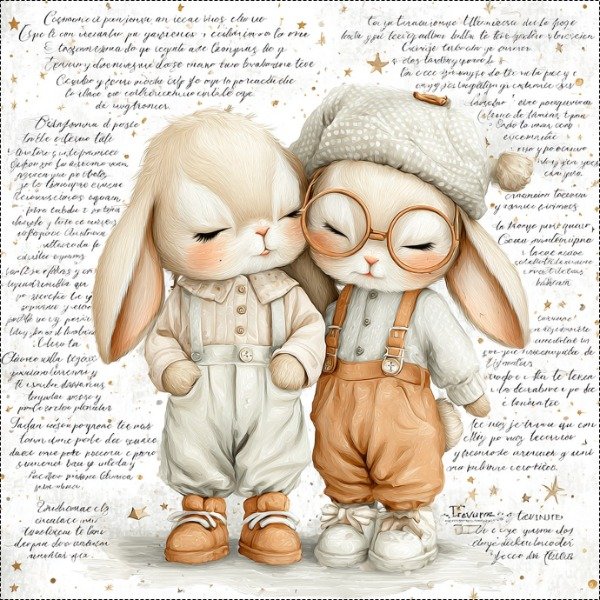 🌟 Estos dos conejitos best friends te parten el alma de ternura - uno con gorro de dormir y el otro con anteojos, tomados de la mano como si nada más importara 🐰💕🐰