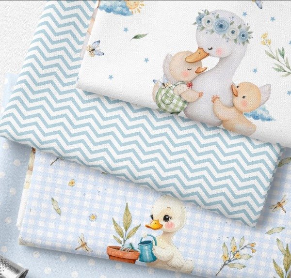 Los tonos celestes suaves como el cielo de la mañana cuando todo es calma. Los chevrones que son como caminos. Los lunares que son como las estrellitas que le vas a contar antes de dormir. El vichy a cuadritos que te recuerda a tu propia infancia.