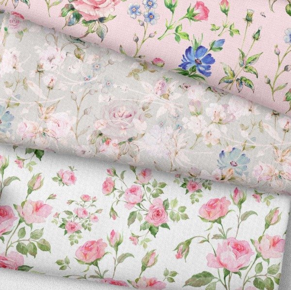 🌹 4 diseños florales coordinados 📏 3 tamaños disponibles por diseño 🎨 Tonos rosa, blanco, azul suave, verde jardín